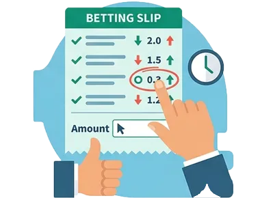 আপনি যে ফলাফলের উপর বাজি ধরতে চান তার জন্য অডস এ ক্লিক করুন। এর পরে, নির্বাচনটি আপনার বাজি স্লিপে যোগ করা হবে। বাজির পরিমাণ লিখুন, সম্ভাব্য জয় দেখুন এবং আপনার বাজি নিশ্চিত করুন। এখন আপনি “আমার বাজি” বিভাগে ম্যাচের অগ্রগতি অনুসরণ করতে পারেন এবং আপনার বাজি ট্র্যাক করতে পারেন।